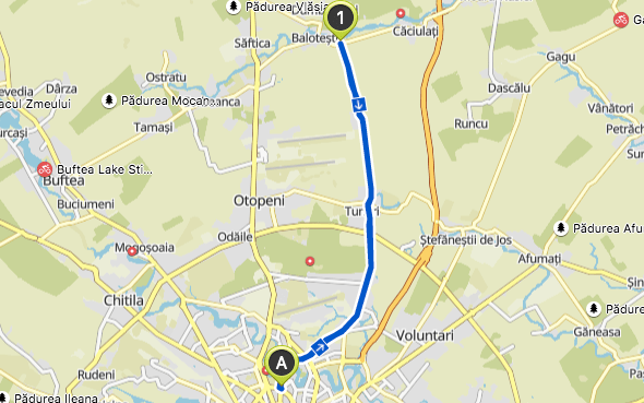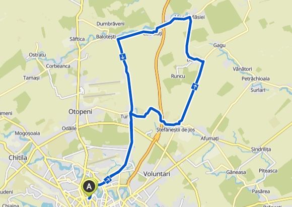 When you talk about the classic route to Moara Vlasiei, most probably you refer to the one below. You add a loop to the short ride illustrated above – a loop that gets you further away from the city, through tree-bordered roads and also through a forest. We once saw a deer in the forest – just one second glimpse!