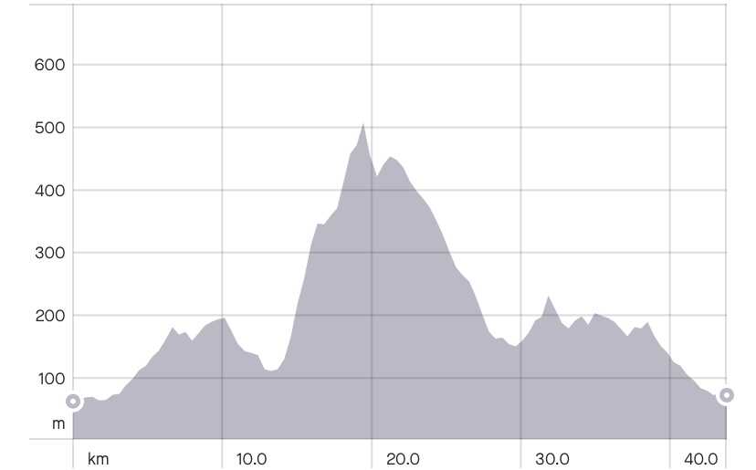 Distance: 44 km | Elevation gain: 800 m (max elevation 513 m)